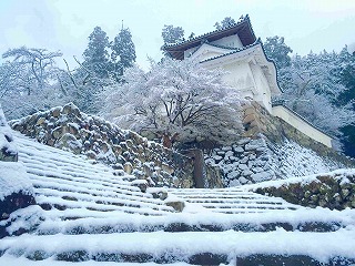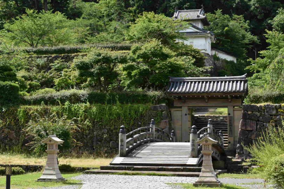 | 出石のまちの南側にある高台に城跡があります。城跡から見ると、黒い瓦屋根のまちなみが目の前に広がります。国の重要伝統的建造物群保存地区に選定されています。 |