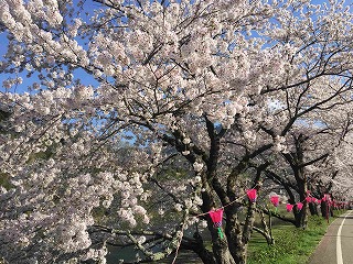 | 世代に関係なく大切にされている清滝小学校の桜のほか、国道482号線沿いに桜並木が整備されているため、春先の車窓の景観を楽しむことができる。 |