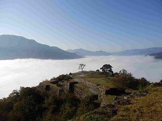 | 険しい山の頂にある竹田城跡では穴太衆により緻密に積まれた大規模な石垣を見ることができる。石と土と樹木だけで構成された景観が幻想的。 |