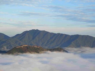 朝来市にある竹田城跡は標高約357mの山頂にあり、雲海に包まれた竹田城跡から見る眺望は、まるで雲の上に立っているような感覚が味わえる絶景スポットです。 撮影:朝来市産業振興部観光交流課 |