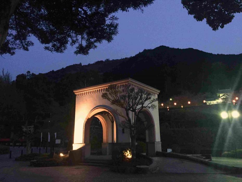 | 東山公園は明治中期に整備され、手軽に登れて温泉街や円山川が望める公園として親しまれてきました。自然豊かな山懐にいだかれて石州瓦の屋並みが続く温泉街が見渡せます。 |