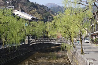 | 豊岡市大谿川の太鼓橋から見る城崎温泉街 |