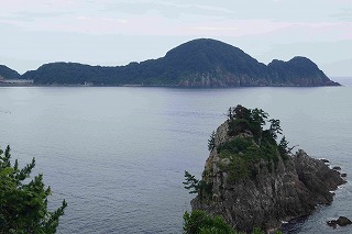 | 豊岡市県道11号香美久美浜線から見るはさかり岩 |