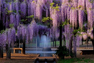 地元の方々が一生懸命に育てあげた、迫力ある三段藤は言葉にできないほど感動です。 撮影:福岡賢明 |
