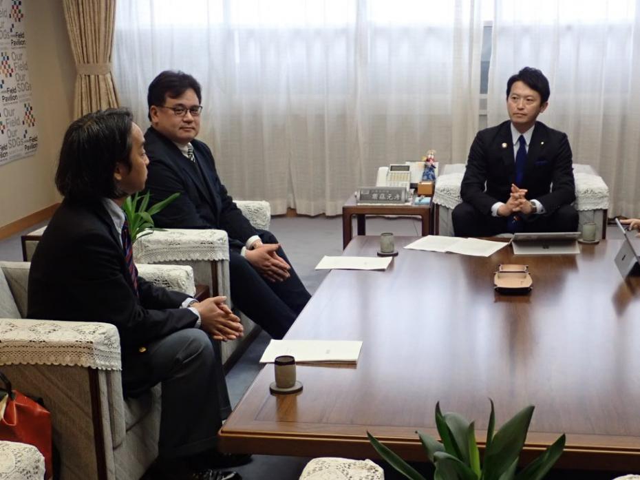 第5回において、県立都市公園の自然環境保全や活性化のあり方についてのとりまとめが行なわれました。これを受け、赤澤宏樹会長より知事へ提言書が交付されました。