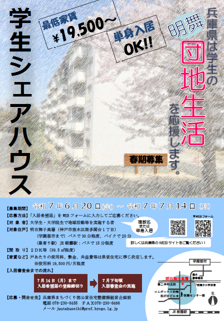 学生シェアハウス詳細は次の募集要項等をご確認ください。