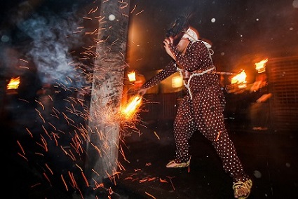 東光寺の鬼追いです。歴史のある伝統行事です。赤鬼がたいまつを手に暴れまわります。あぶないです。