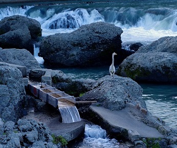 加古川の中流に位置する闘竜灘は奇岩が川床に起伏し激しい流れが岩を走る模様に魅了されます。水路の鮎を狙って時々飛来するサギの姿もおもしろいです。