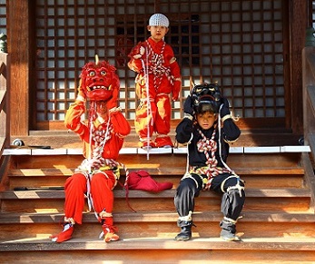 大宮八幡宮の鬼追い式に参加する小鬼たちが、出番前にもかかわらず、少しリラックスした姿を撮ることができた。本番での見事な姿も目にやきつき、今後も残しておきたい光景だと感じました。