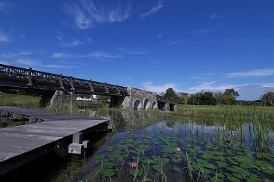厳密には石の橋ではないのでしょうが、石や木コンクリートなどを組み合わせ、凝った珍しいデザインの橋だと思います。周囲の景観と共に是非次の世代まで残しておいてほしい橋だと思いました。