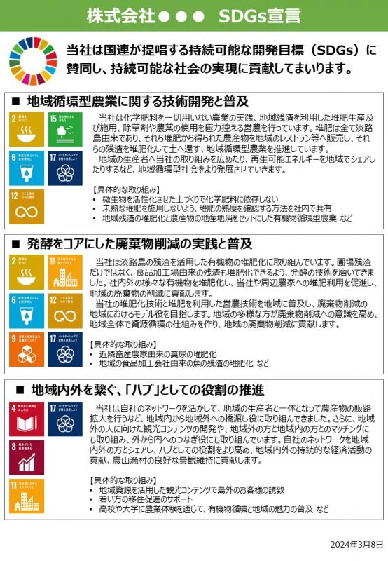 農林漁業者等のSDGsの達成に向けた取組の見える化により、消費者の理解を醸成し、農林漁業者等の取組気運の向上を図るため、「SDGs宣言」を行った農林漁業者等を県が登録して集約・公表します。
