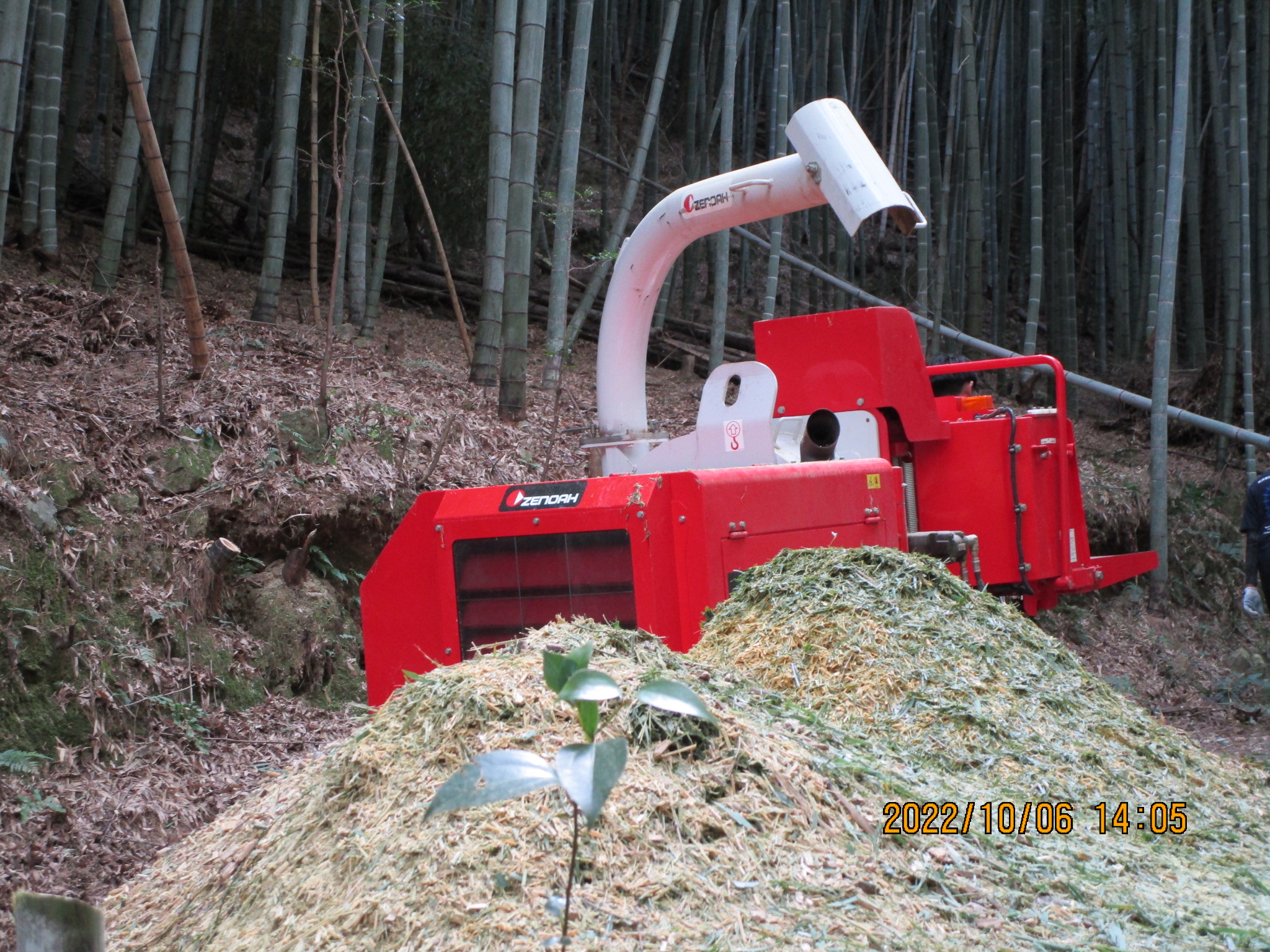 竹林内におけるチッパーでの破砕