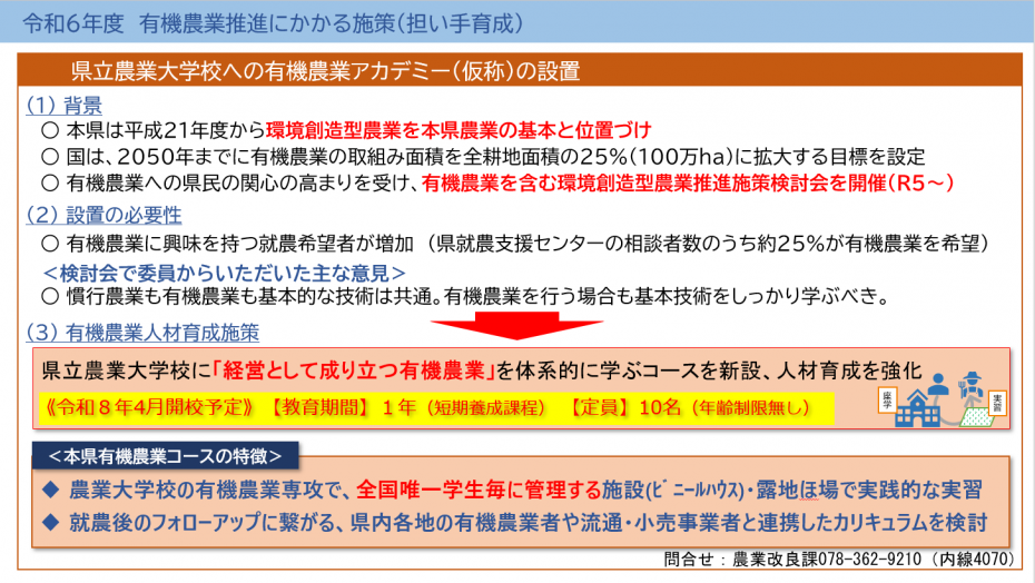 有機農業アカデミー(仮称)の設置について(令和8年4月開校予定)