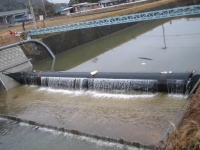 実施例:農業用水取水堰の改修(施工前:ゴム堰起立困難。たつの市)