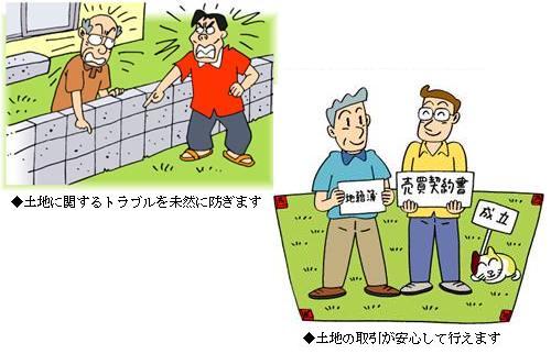 現在、県内の登記所に備え付けられている図面のうち、約半分が明治時代の地租改正で作られた公図を今でも使用しているため、隣近所との境界を正確に表わしていないことが多く、災害などが起こったときに境界の復元が困難です。