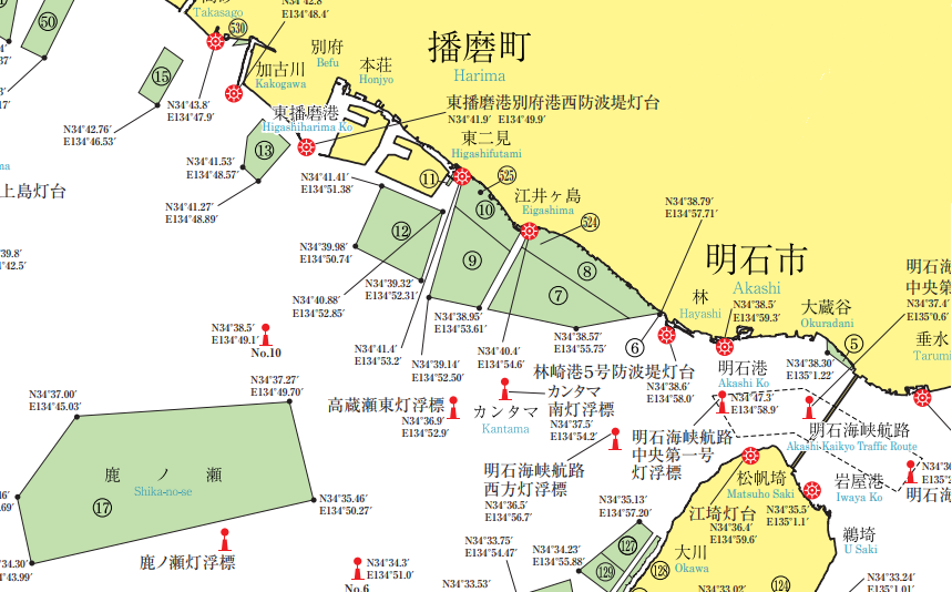 【播磨灘、鹿ノ瀬周辺の漁場】