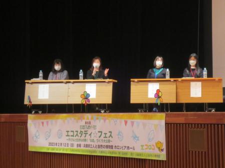 県内の4つの園の先生方と辰村絢こども環境体験コーディネーターより、園庭づくりや園庭での体験の取り組みの実践を発表いただいた後、発表者の皆さまによるパネルディスカッションを行い、園庭づくりの未来について語り合いました。