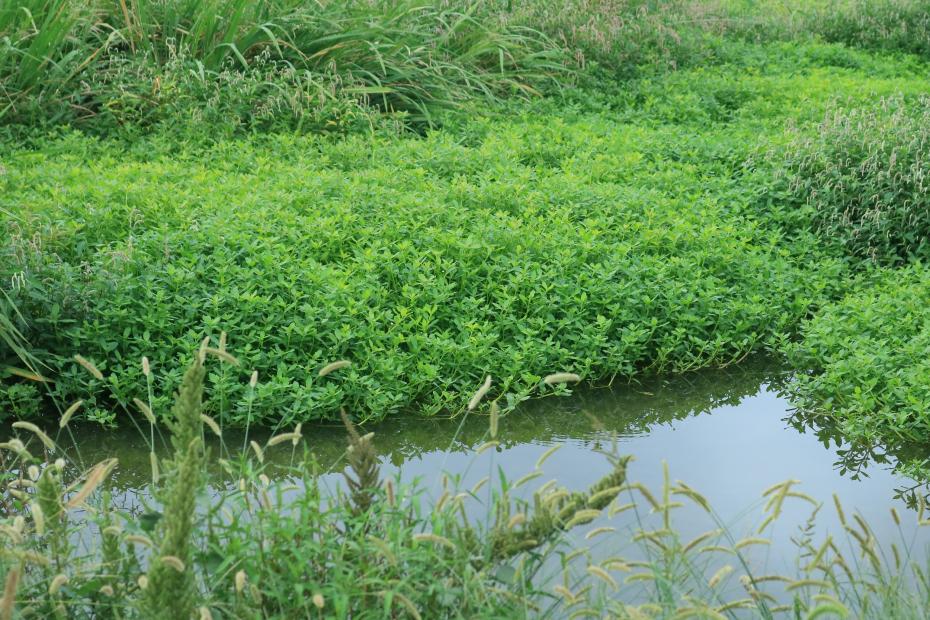 ナガエツルノゲイトウは、国が特定外来生物に指定している南米原産の水生植物です。凄まじい繁殖力・再生力で、茎や根の小さな断片からも再生可能です。また、水生植物ですが、乾燥に非常に強く耐塩性もあり、陸上や海浜でも生育します。