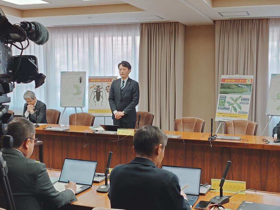 会議では、環境部自然鳥獣共生課より、県内での「ナガエツルノゲイトウ」と「クビアカツヤカミキリ」の被害状況とこれまでの対策手法について報告し、今後の防除目標と地域主体での防除活動の必要性について協議しました。