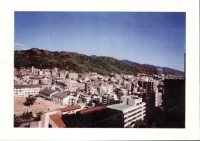 市街地の背後に広がる保安林