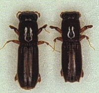 カシナガ成虫(左が雌・右が雄)((独)森林総合研究所関西支所提供) |