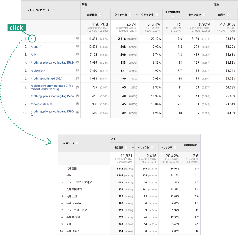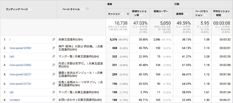 サイトの入口になっている記事を把握できます。どのページ、どんな内容がユーザーとの接点になっているかを確認することができます。