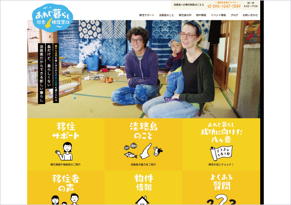 「あわじ暮らし」は、移住の基本的情報の他に、移住者の声、物件情報、イベント情報等について各々更新できる機能を追加。さらに、それらをきれいに整え、見やすくする独自のデザインをされています。