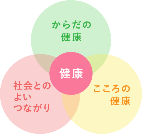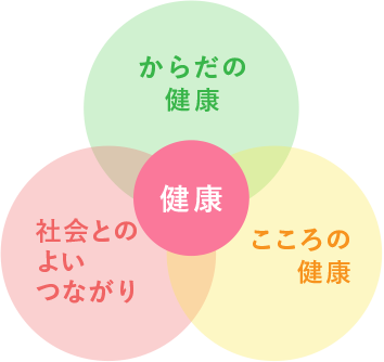 自分らしく生きるために大切なことは、「からだの健康」「こころの健康」「社会とのよいつながり」の3つです。