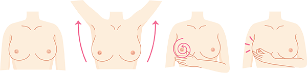 「乳がん」は、月1回、セルフチェックをしましょう。お風呂やシャワーのとき、石けんがついた手で触れると乳房の凹凸がよくわかります。月経がはじまって1週間前後のタイミングでやってみましょう。