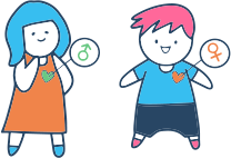 生まれるときに「染色せんしょくたい」と呼ばれるもので男の子・女の子と決められるけど、それは体の性別。こころが感じる性別は違うこともあるよ。