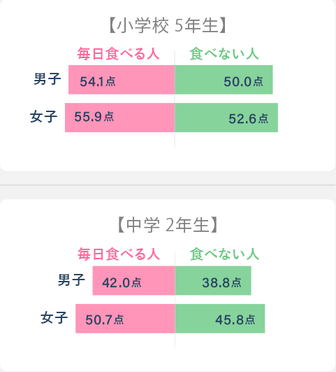 男子も女子も毎日朝食を食べる人のほうが体力テストの結果がいいね!