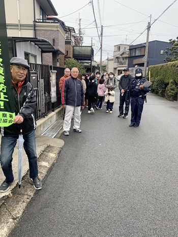 特殊詐欺被害防止活動を行う西宮市小松町自治会のみなさん |