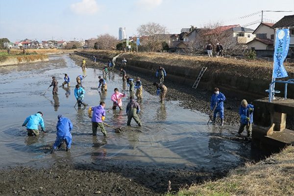 地域と協力して行うため池のかいぼり体験(明石市) |