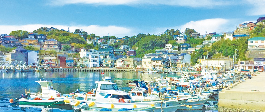 姫路港から定期船で約30分、美しい海に囲まれた坊勢島は、瀬戸内海国立公園に含まれる大小44の島々から成る家島諸島の一つ。周囲約11kmと小さく、山が海岸まで迫り平地が少ない地形のため、急斜面に家々が立ち並ぶ独特の景観が広がっています。大半の家庭が漁業に従事しており、活気に満ちた港には漁船がずらり。その総数は800隻ともいわれ、県内で1、2を争う漁獲高を誇っています。