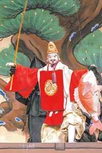 淡路人形座は1964(昭和39)年、室町時代から続く淡路人形浄瑠璃の保存・継承を目的に発足し、現在は専用劇場で1日に4回の公演をしています。人気演目の「戎舞(えびすまい)」では、上演前にバックステージツアーと人形解説を実施。