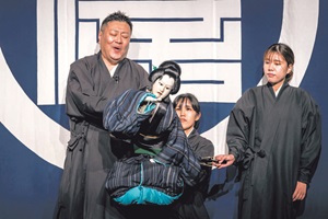 舞台背景のふすま絵が次々に変わり千畳敷の大広間になっていく“大道具返し”の実演や、1体の人形を3人で操作する方法の紹介をします。舞台で特に注目してほしいのが、まるで魂が吹き込まれたかのような人形の動きです。首のかしげ方やまばたき、手振りで喜怒哀楽を情緒豊かに表現し、見る者を物語の世界へぐっと引き込みます。