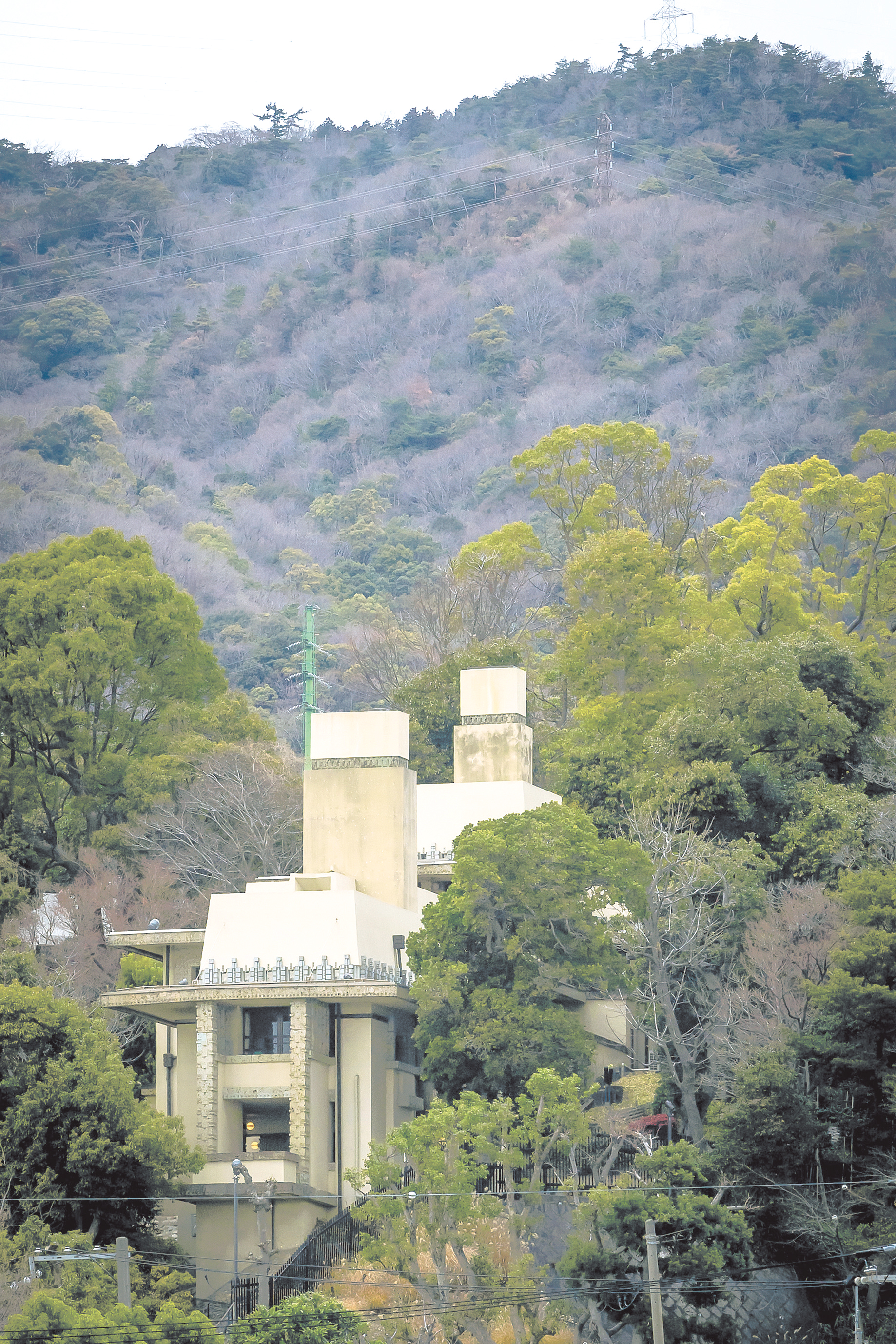本ヨドコウ迎賓館は1918(大正7)年、米国の建築家フランク・ロイド・ライトの設計を基に、弟子の遠藤新と南信の実施設計、工事監督により24年完成しました。当初は山邑酒造(株)(現在の櫻正宗(株))の8代目当主、山邑太左衛門の別邸として使われていましたが、実業家に売却され、その後47(昭和22)年に(株)淀川製鋼所が購入。74年には国の重要文化財に指定されました。ライト建築の特徴は、自然との調和です。建築当時この辺りは緑豊かな住宅地として知られ、当館も山の稜線(りょうせん)を生かして建てられました。