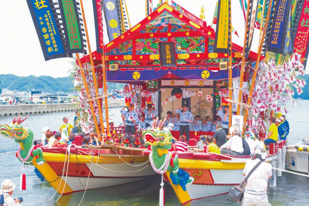 南あわじ市の南東に浮かぶ沼島は、漁業が盛んで、約300人の島民の多くが漁師とその家族。神々によって創られたとされる日本の始まりの地「おのころ島」の伝説が残り、周囲には、国生み神話に登場する「伊弉諾尊(いざなぎのみこと)」や「天(あめ)の沼矛(ぬぼこ)」「天(あめ)の御柱(みはしら)」と伝わる高さ約30mの「上立神岩」など奇岩や岩礁が点在、神秘的な風景が広がります。