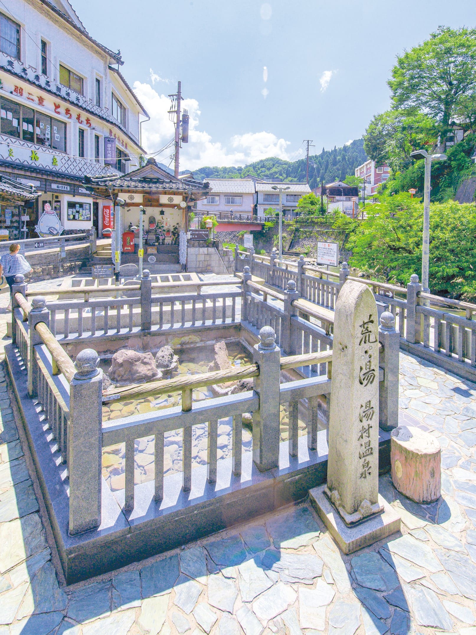 約1200年前に発見された「荒湯」。周りの湯つぼは24時間いつでも利用できます。 |