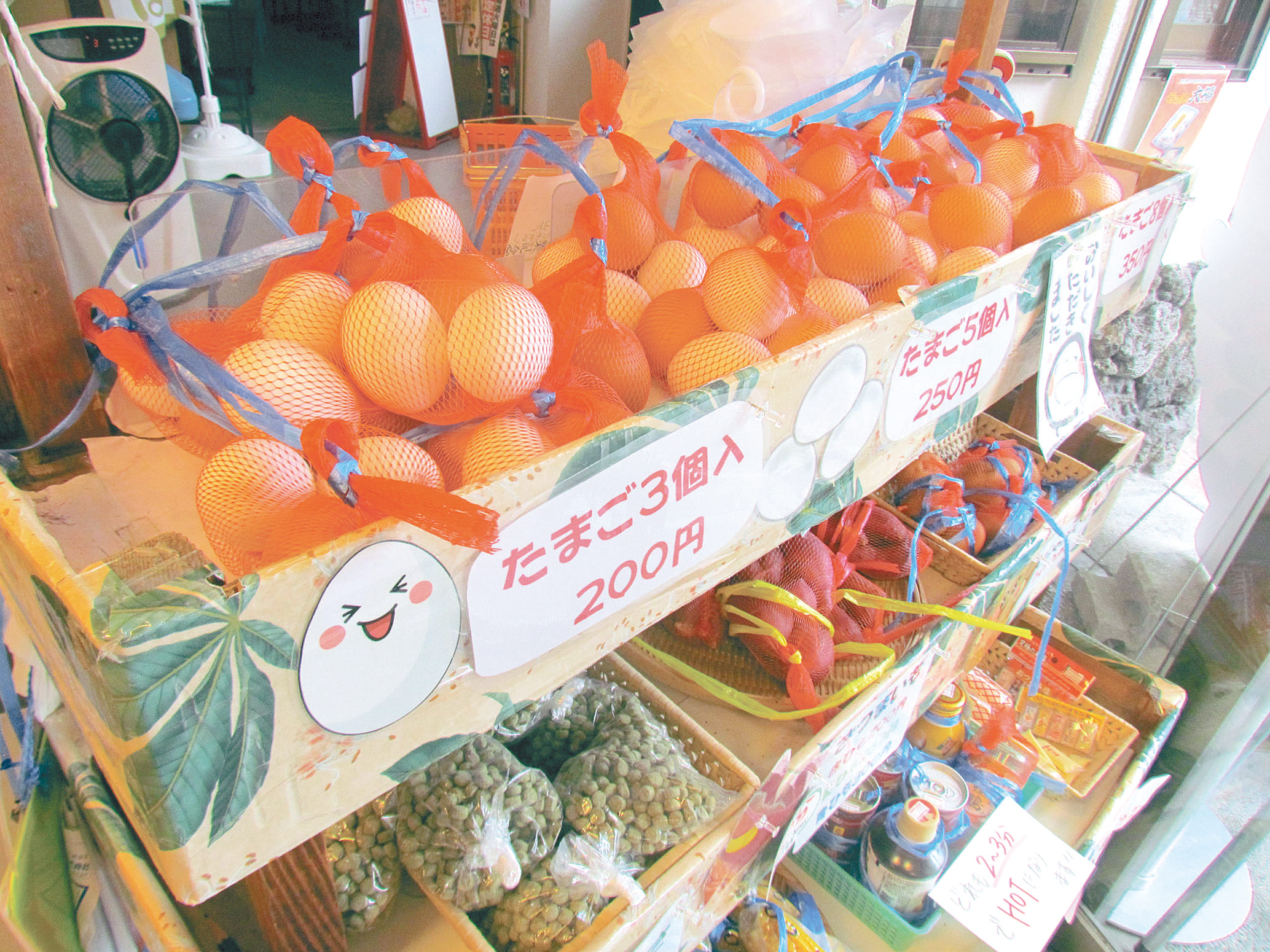 土産物店に並ぶ卵。湯つぼに漬けて10~12分でゆで上がります。 |