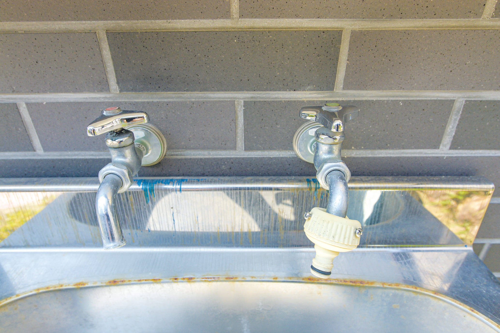 温泉街の全戸に配湯されており、民家の玄関口には水道水と温泉の2つの蛇口。温泉は主に融雪に使います。左が温泉。 |