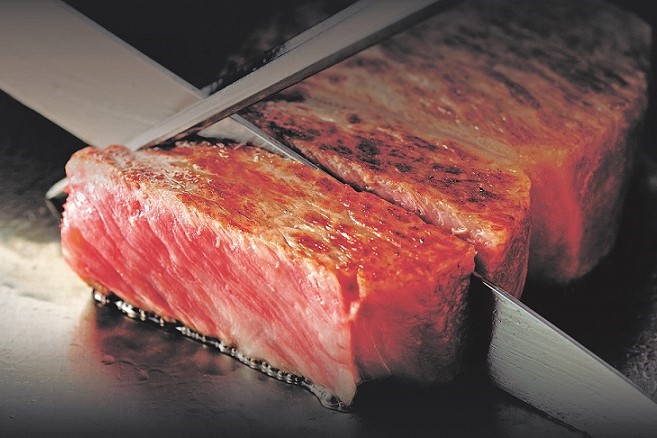 甘みのある赤身と細かく入ったサシ(脂肪)が極上の味を織り成す最高級ブランド和牛「神戸ビーフ」。霜降りの度合いや肉のきめ細かさなど、厳しい認定基準を満たすものだけに与えられる称号です。素牛(もとうし)となる「但馬牛(うし)」は、県外の牛と一切交配せず、繁殖から肉牛としての出荷まで全てを兵庫県内だけで行っています。