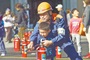制帽をかぶり、手袋をはめて出発進行!指定の位置でピタリ停車に挑戦します。 |