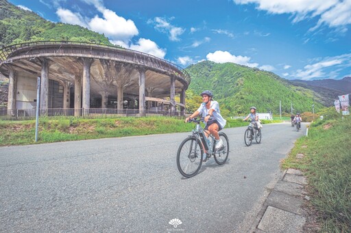 E-バイクで鉱山関連のスポットを巡ります。(Asago Cycling提供) |