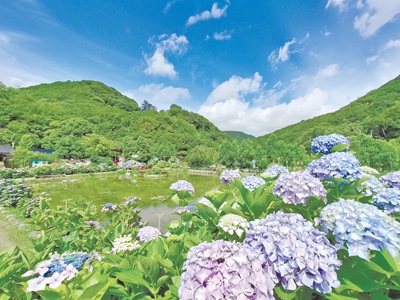 竹原原木椎茸は、アジサイの名所「あわじ花山水」内の施設で育てられています。