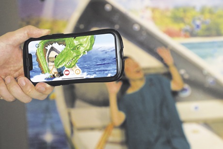 「トリックARアート」アプリをダウンロードしたスマートフォンを作品にかざすと、画面に新たな動画が現れます。毎年4月にほぼ全ての作品をリニューアルしており、今年は「アドベンチャー」をテーマに、龍やキングコング、コブラから逃げたり、恐竜とバトルしたりと、作品の一部になって冒険を楽しむことができます。家族や友人と、トリックアートの不思議な世界を体験してください。