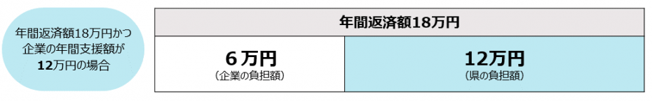対象となる従業員の年間返済額や、従業員に対する企業の支援額に応じて補助を行います。