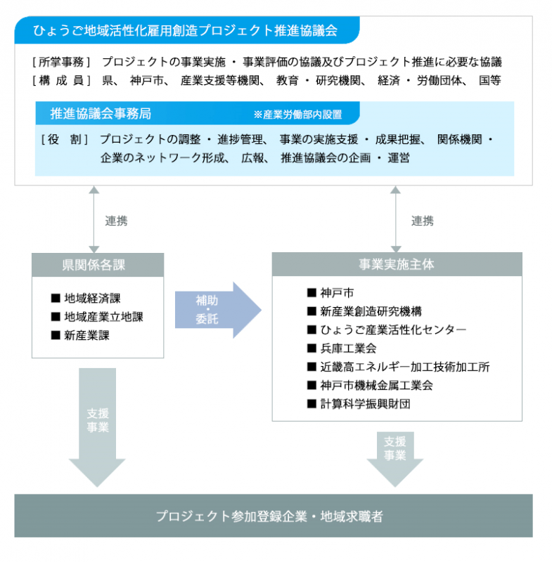 兵庫県では令和3~令和5年度に兵庫県地域活性化雇用創造プロジェクト(「ひょうご次世代産業DX導入・人材育成プロジェクト」及び「ひょうごものづくり企業多角化促進・人材育成プロジェクト」)により次世代産業における生産性・競争力の向上による労働力需要の増大と業務の見直しが期待できるDX導入のための支援や多角的な事業展開への支援等に取り組み、多くの雇用を創出してきました。