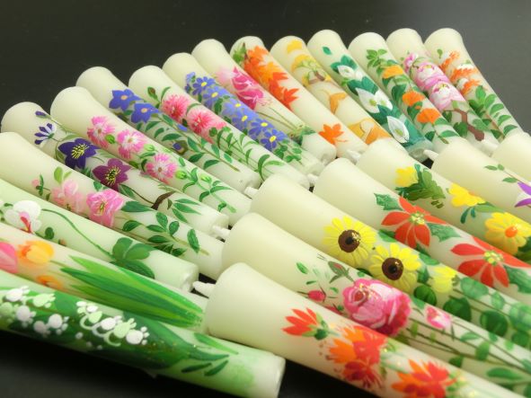 現在4代目の松本恭和氏を中心に寺院の灯明用や家庭用の絵ろうそく等を製造販売しています。