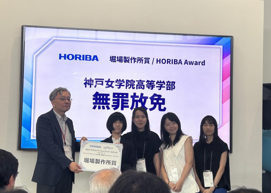 9月17日(水曜日)に大阪・関西万博会場 FLEステージにて開催された「NICTネクストアントレプレナーズピッチ supported by スタートアップチャレンジ甲子園×高校生ビジネスプラン・グランプリ」において、スタートアップチャレンジ甲子園の過去出場者が出場し、神戸女学院高等学部が「NICT賞」と「サポーター企業賞」をW受賞、兵庫県立長田高等学校が「サポーター企業賞」を受賞しました。